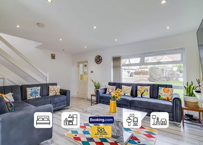 Situated around 10 minutes by car from Garforth Golf Club, the 1-bedroom Three Br House By Ace Homes Short Lets & Serviced Accommodation Leeds With Free Wifi Sleeps7 entices guests to explore various tourist attractions in the area. Guests can enjoy cycling and fishing at this Leeds holiday home, located within 7 km of the Kirkgate Market.